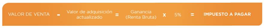 Paga impuesto la “ganancia obtenida como resultado de la venta” (es la diferencia entre el valor actualizado de adquisición y el valor de venta) cuyo pago lo debe realizar el vendedor hasta el mes siguiente de recibido el ingreso