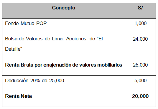 (*) Las Rentas de Fuente Extranjera por la enajenación de acciones y demás valores mobiliarios se sumarán y compensarán entre sí, de resultar una renta neta, esta se sumará a la Renta Neta de Segunda categoría. No se tomará en cuenta las pérdidas obtenidas en países o territorios de baja o nula imposición.